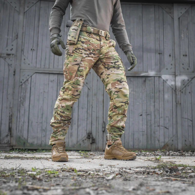 Вітчизняний бренд M-Tac намагається впроваджувати на ринок інноваційні технології. Тканина з вмістом поліестеру і бавовни приємна до тіла, добре тримає колір і відрізняється високою міцністю. Основною ідеєю при створенні цих штанів було збереження комфорту рухів, і з цим завданням дизайнери впоралися на всі сто відсотків - брюки створюють відчуття легкості, не сковують рухи і виглядають стильно і солідно. Зручні широкі кишені з посиленими вставками. Штани розраховані на носіння з ременем шириною до 5.5 сантиметрів. Спереду на петлях для ременя нашиті пряжки для кріплення чого завгодно (за допомогою карабінів). Якісна фурнітура від компанії YKK. Добре підібрані за розміром брюки настільки зручно сидять і носяться, що складається враження, ніби вдягнений у спортивні штани.