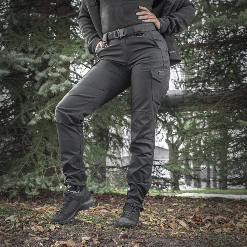 M-Tac брюки Aggressor Lady Flex ви можете використовувати, як для тренувань, стрільбища, роботи, так і для ділової подорожі або прогулянки. Вітчизняний бренд M-Tac намагається впроваджувати на ринок інноваційні технології. Пошиті штани з легкої, однотонної тканини ріп-стоп, з водо- і брудозахисним просоченням Teflon. Тканина з вмістом поліестеру і бавовни приємна до тіла, добре тримає колір і відрізняється високою міцністю. Основною ідеєю при створенні цих штанів було збереження комфорту рухів, і з цим завданням дизайнери впоралися на всі сто відсотків – брюки створюють відчуття легкості, не сковують рухи і виглядають стильно і солідно. Зручні широкі кишені з посиленими вставками. Штани розраховані на носіння з ременем шириною до 5.5 сантиметрів. Спереду на петлях для ременя нашиті пряжки для кріплення чого завгодно (за допомогою карабінів). Якісна фурнітура від компанії YKK. Добре підібрані за розміром брюки настільки зручно сидять і носяться, що складається враження, ніби вдягнений у спортивні штани.