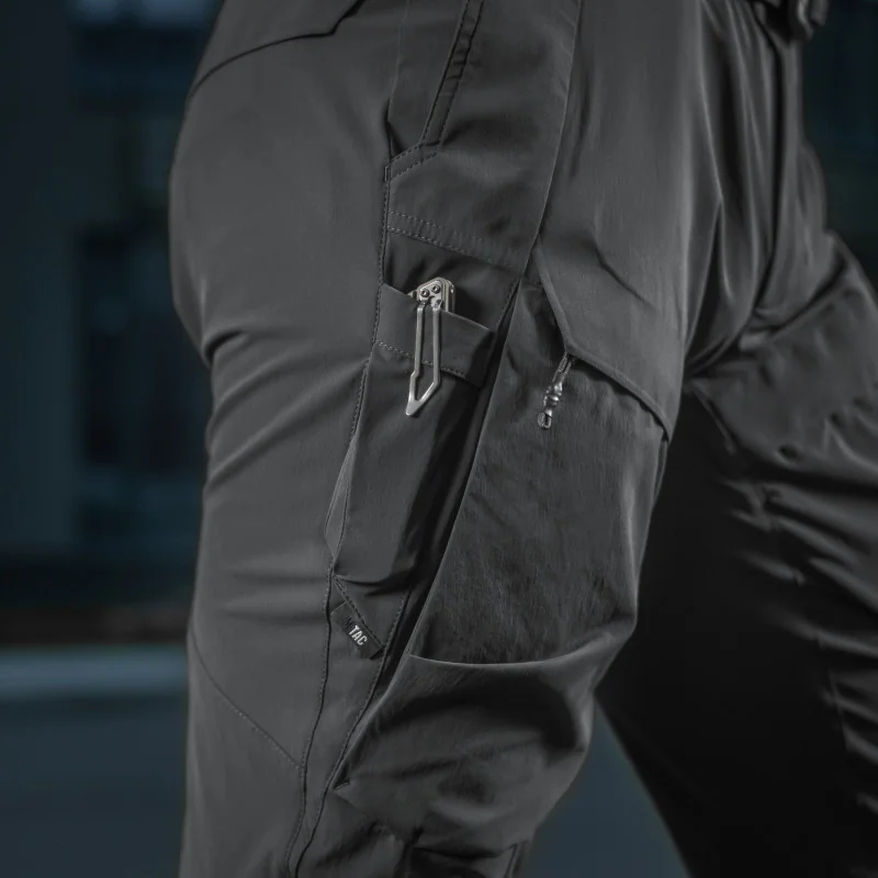 Безліч кишень дозволяють розмістити необхідний мінімум речей. Конструктивною особливістю даної моделі є незвичайний дизайн карго кишень, які скошені всередину і розташовані ближче до внутрішньої поверхні бедра. Завдяки продуманому крою штани не обмежують свободу рухів і можуть легко виконувати завдання як тактичного, так і повсякденного одягу.