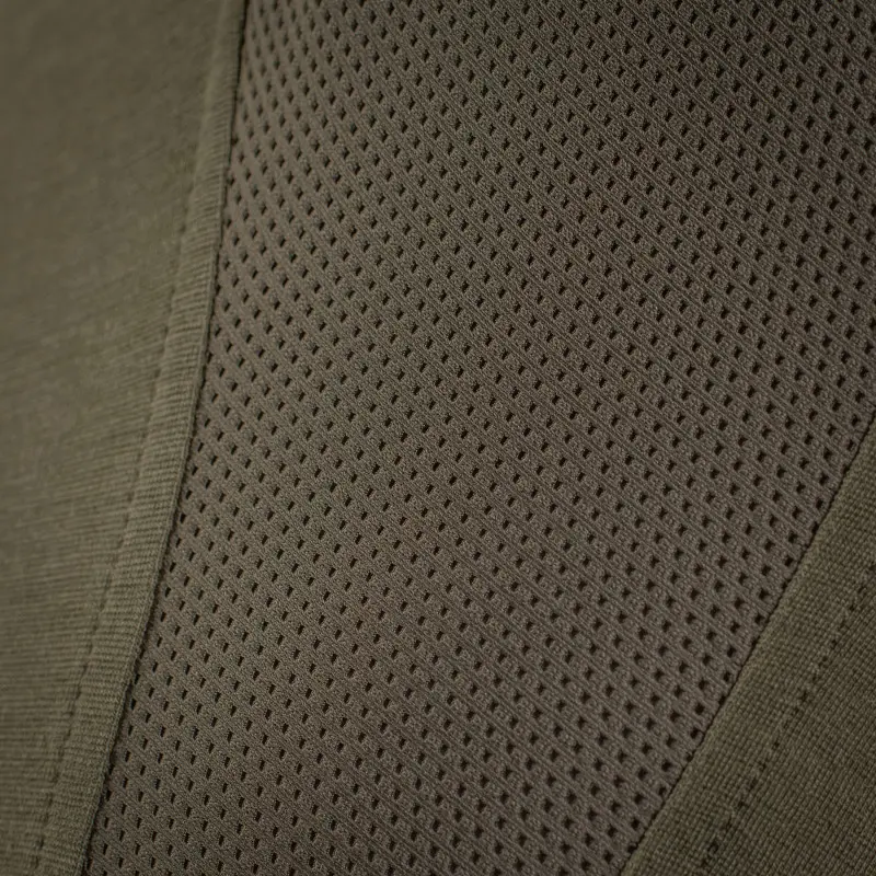Спинка та торс сорочки виготовлені з трикотажного матеріалу Polartec fire resist (66% модакріл, 29% ліоцелль, 5% спан). Найбільшу відсоткову частку в складі цього матеріалу займає модакріл. Тканини виготовлені з включенням цього синтетичного волокна є стійкими до вогню та, відповідно, загоряння. В поєднанні з іншими компонентами, що є в складі матеріалу Polartec fire resist, утворюється унікальна комбінація вогне- та водостійкості, мякості та еластичності.