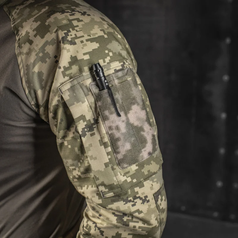 Спинка та торс сорочки виготовлені з інноваційного матеріалу (59% нейлон (Cordura), 41% тенсел). Він приємний на дотик, еластичний та забезпечує відмінну терморегуляцію тіла. Рукава пошиті з міцної та зносостійкої тканини: 50% бавовна, 50% нейлон. Це оптимальне поєднання стійкості до зношування і повітропроникності. Лікті посилені подвійним шаром тканини, яка забезпечує високу надійність при активному використанні. Конструктори бренду під пахвами додали вставки з сітки для поліпшеної вентиляції і відведення вологи. Також на рукавах дизайнери передбачили прикриті клапаном вертикальні кишені для зберігання цінних речей. Велкро панелі оснащені спеціальними отворами під хімсвітло та інше канцелярське приладдя. На лівому рукаві є додаткові кишені для ручок.