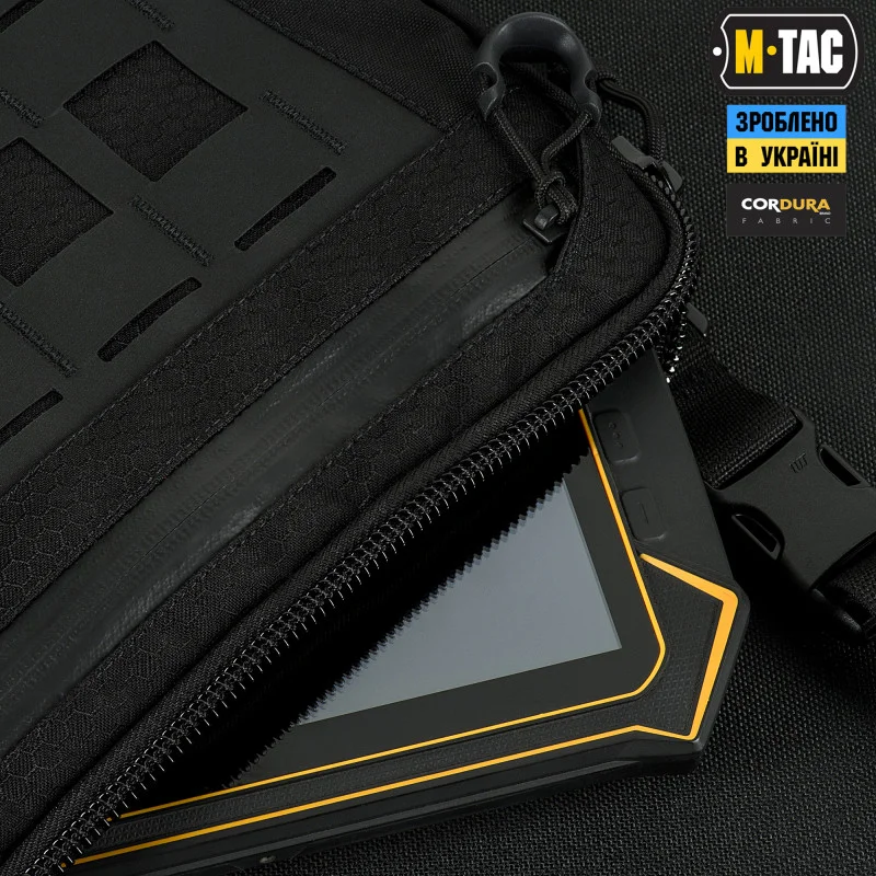 Ультрасучасна сумка Admin Bag Elite від M-Tac поєднує в собі стильний зовнішній вигляд і добре продуманий функціонал. Виготовлена з Cordura 500D і Cordura Hex – надміцного, зносостійкого і легкого у догляді матеріалу. Блискавки і пряжки від YKK і Woojin – світових лідерів із виробництва фурнітури.