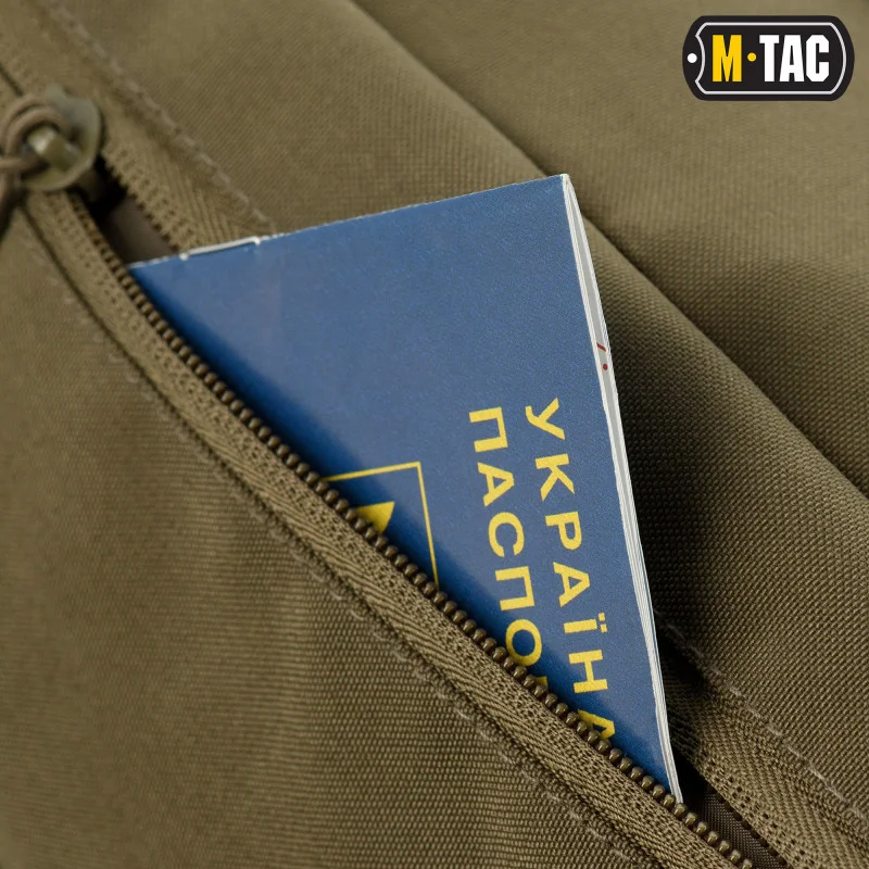 Поясна сумка M-Tac Companion Bag Large пропонує безліч унікальних функцій. У чотирьох кишенях можна розмістити що завгодно: гроші, смартфон, аптечку першої допомоги, інструменти, перекус, рукавички тощо. Просторий головний відсік закривається двосторонньою “блискавкою”, оснащений сітчастою кишенею на «блискавці» і панеллю-органайзером з плоскими кишенями і пятьма слотами. Дві зовнішні кишені закриваються “блискавками”. Тильна фіктивна кишеня-рукав дозволяє приховати пояс сумки й одягнути її на широкий ремінь, рівномірно розподіливши навантаження. Панель з Velcro розташована на зовнішній кишені та може бути використана для персоналізації.