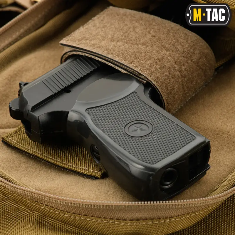 Відділення для носіння пістолета, завдяки універсальній кобурі з липучкою, легко підлаштовується під більшість моделей пістолетів, таких як ПМ і його різні модифікації, всі моделі лінійки ФОРТ, а також Глок, Кольт і багато інших варіантів короткоствольної зброї.