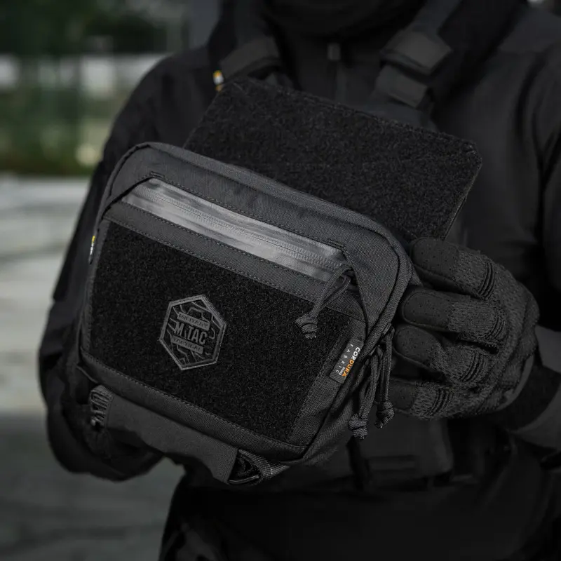 Однак у цих виробів є ще одна важлива функція: вони слугують як захист нижньої частини торса, поєднуючи роль утилітарника та чохла для балістичного захисту. У задню кишеню сумки-напашника можна встановити M-TAC балістичний пакет 1 клас (не йде в комплекті).