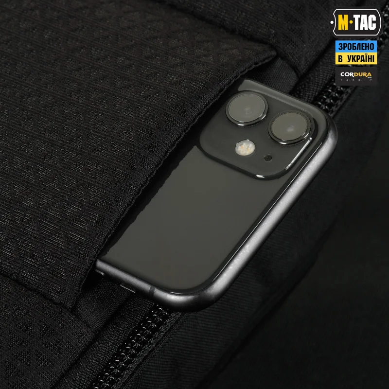 З тильної сторони сумки є невелика відкрита вертикальна кишеня для смартфона або інших предметів (наприклад, ліхтарика чи ножа).