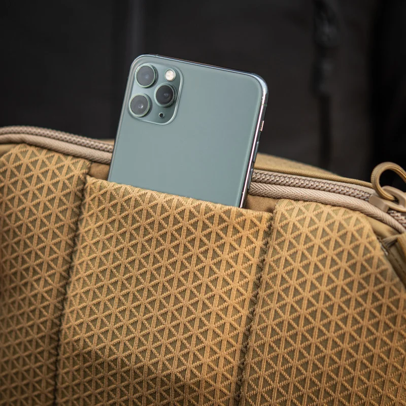 З тильної сторони сумки є невелика відкрита вертикальна кишеня для смартфона або інших предметів (наприклад, ліхтарика чи ножа).