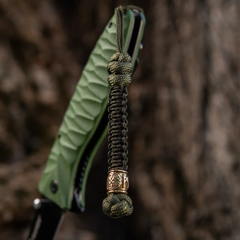 Темляк із плетеного паракорда – це стильна декоративна прикраса, яка придасть оригінальності вашим аксесуарам та підкреслить індивідуальність власника. Це свого роду запасний шнур, який завжди під рукою. Також темляк значно спростить процес виймання ножа з кишені або його пошук серед спорядження. Декоративна намистина зі скандинавськими мотивами додасть особливої родзинки темляку. Даний аксесуар стане незамінним помічником при використанні ножа, ліхтарика або іншого подібного за розмірами спорядження.