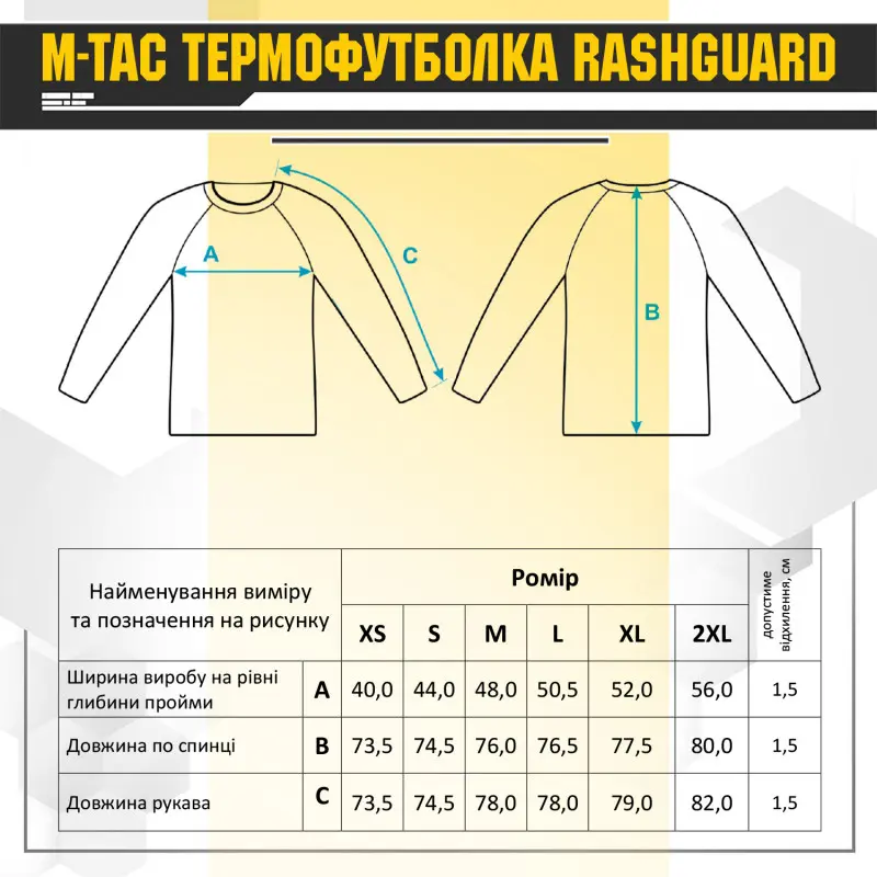 Rashguard від бренду М-Тас – це компресійна термофутболка, яка максимально захистить шкіру при фізичних навантаженнях, забезпечуючи стабільну температуру тіла. Також Rashguard відрізняється тим, що після активних фізичних навантажень термофутболка не буде мокрою, адже вона ідеально вбирає і виводить вологу, не залишаючи при цьому неприємного запаху.