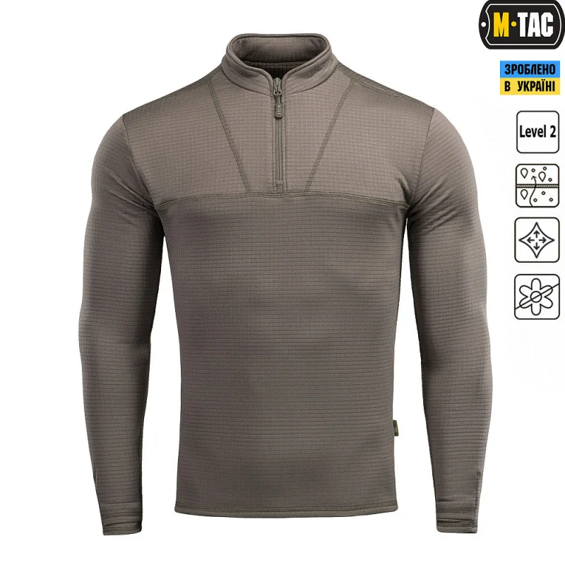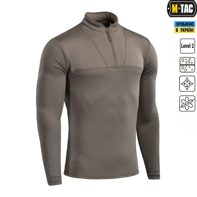 M-Tac Delta Level 2 - термосорочка-пуловер для холодної погоди від бренду M-Tac. Зроблена за образом і подобою другого шару ECWCS - Extended Cold Weather Clothing System Generation (ECWCS). Модель володіє зігріваючими і вологовідвідними властивостями. Розрахована на використання в суворих кліматичних умовах.
