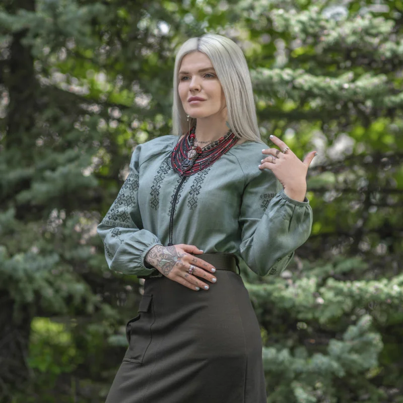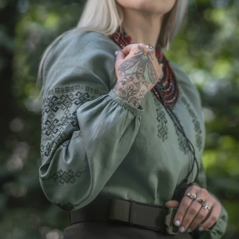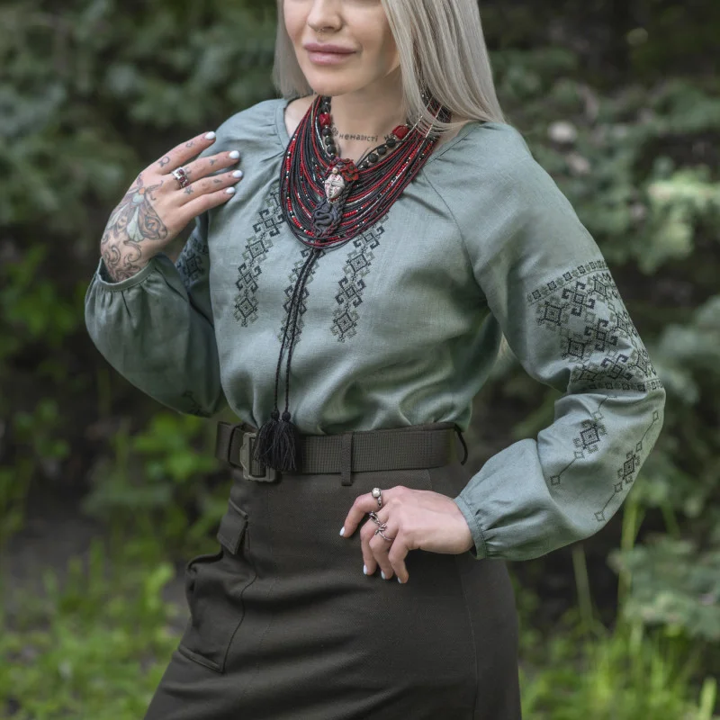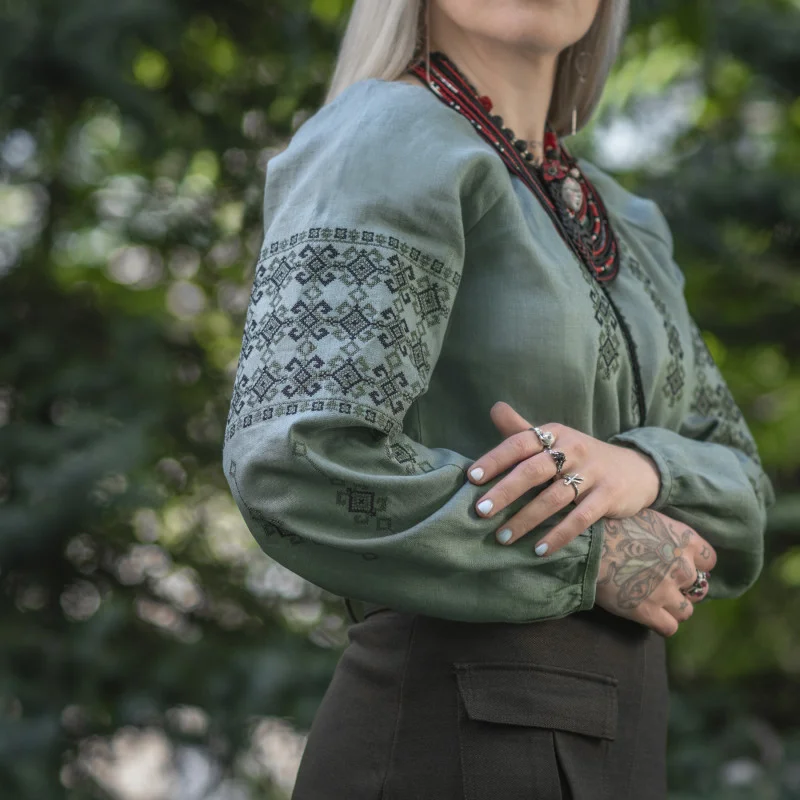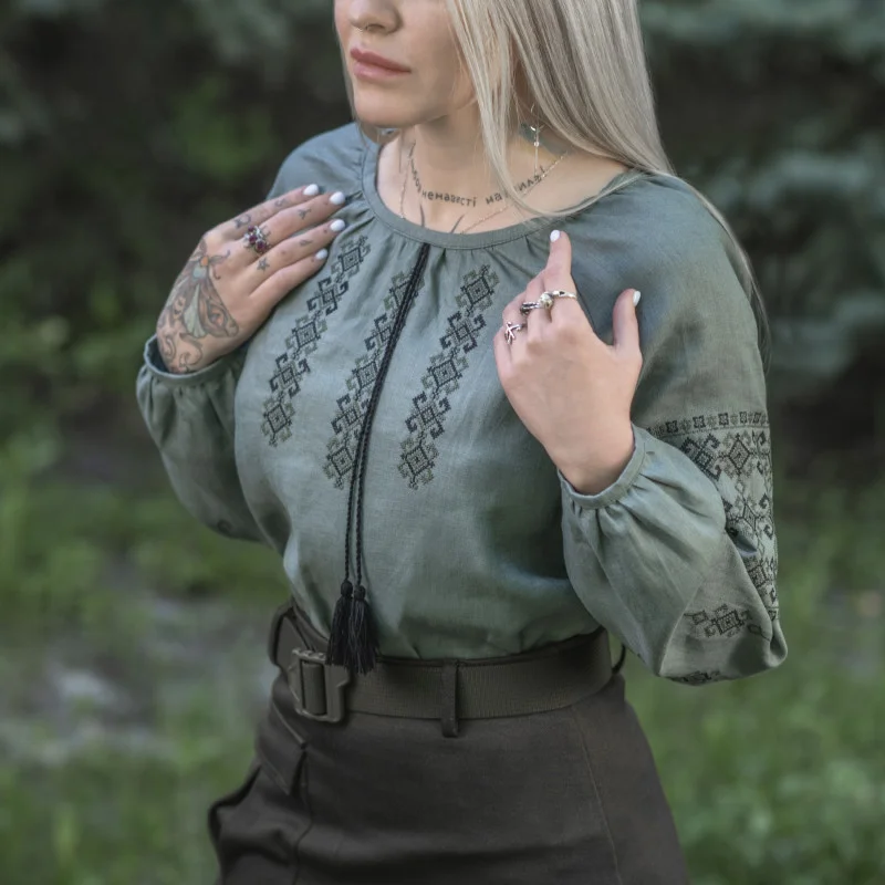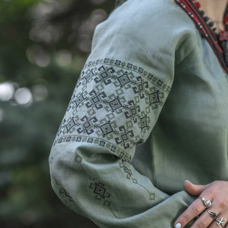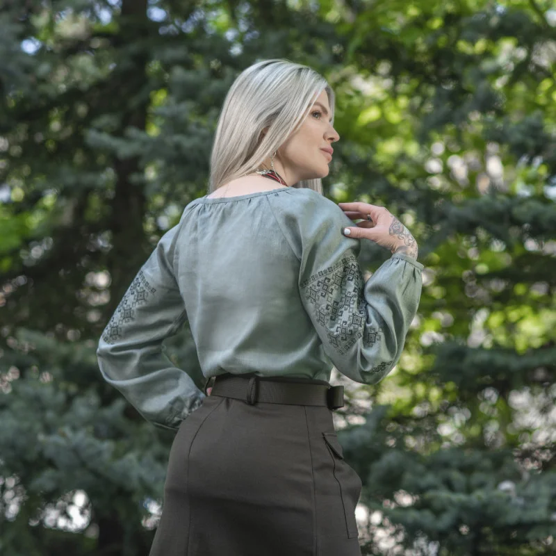 M-Tac вишиванка жіноча 100% льон сіро-зелена
