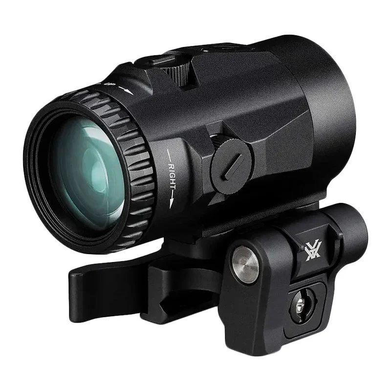 Триразовий магнифер Vortex Micro 3X призначений для збільшення дальності огляду коліматорних прицілів. Ущільнювальні кільця і цілісний корпус з авіаційного алюмінію надійно захищають від попадання всередину вологи і пилу. Магніфер кріпиться на зброю на планку Пикатинни за допомогою швидкознімного кріплення. Регульоване відкидне кріплення дозволяє одним натисканням кнопки і легким рухом руки швидко відвести магніфер в сторону для зміни мети-з дальньої на ближню.