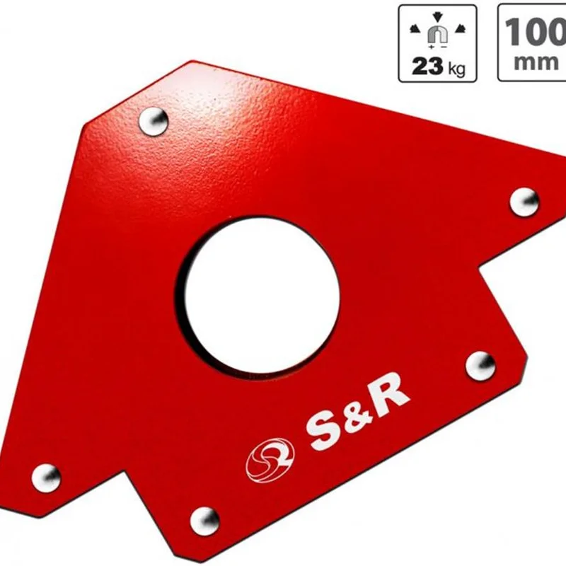 Магнітні тримачі S&R — це надійна фіксація елементів металевих конструкцій. Можливість точно виставити кути деталей, що зварюються, у будь-якому просторовому положенні. Використовуючи магнітні тримачі S&R ви забезпечуєте собі високу швидкість і зручність не тільки під час зварювальних робіт, а також і під час інших робіт з металом. Сила тяжіння: до 23 кг Точні кути: 45°, 90° і 135° Діаметр внутрішнього отвору: 28 мм