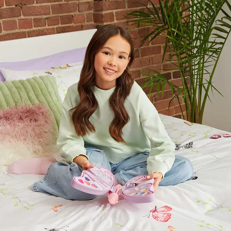 Make it Real.3C4G: Набір для чарівного перетворення «Метелик-сюрприз» містить усе необхідне для створення витонченого макіяжу. Футляр для косметики зроблений у формі метелика і має рухомі крила, що відкриваються і закриваються.Вся косметика перевірена на безпеку для дітей від 8 років. Змішуйте кольори, поєднуйте та експериментуйте, щоб спробувати різні образи!В наборі: 1 футляр для косметики,блиск для губ - 5 шт,тіні для повік- 5 шт,рум’яна - 2 шт,блискітки для тіла - 2 шт,1 лак для нігтів,1 аркуш страз для нігтів,1 пилочка для нігтів,1 пензлик для косметикиінструкція.