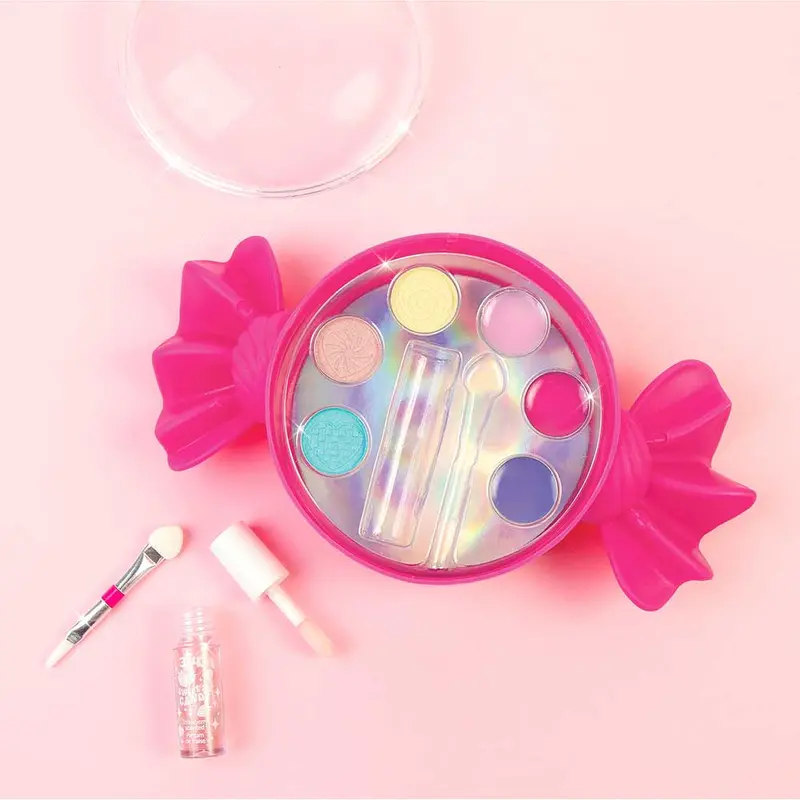 Make it Real.3C4G: Набір для макіяжу "Солодка цукерка" - це набір з 4 блисків для губ, 3 тіней для повік та пензлика, щоб підсолодити день будь-якої модниці.Три кольори тіней для повік, три блиски для губ із запахом ванілі та один колір блиску для губ із ароматом полуниці роблять цей набір справжнім задоволенням! Все зберігається в футлярі у формі цукерки, який можна використовувати навіть після того, як косметика залишиться в пам’яті!Набір рекомендовано для дітей від 8 років.