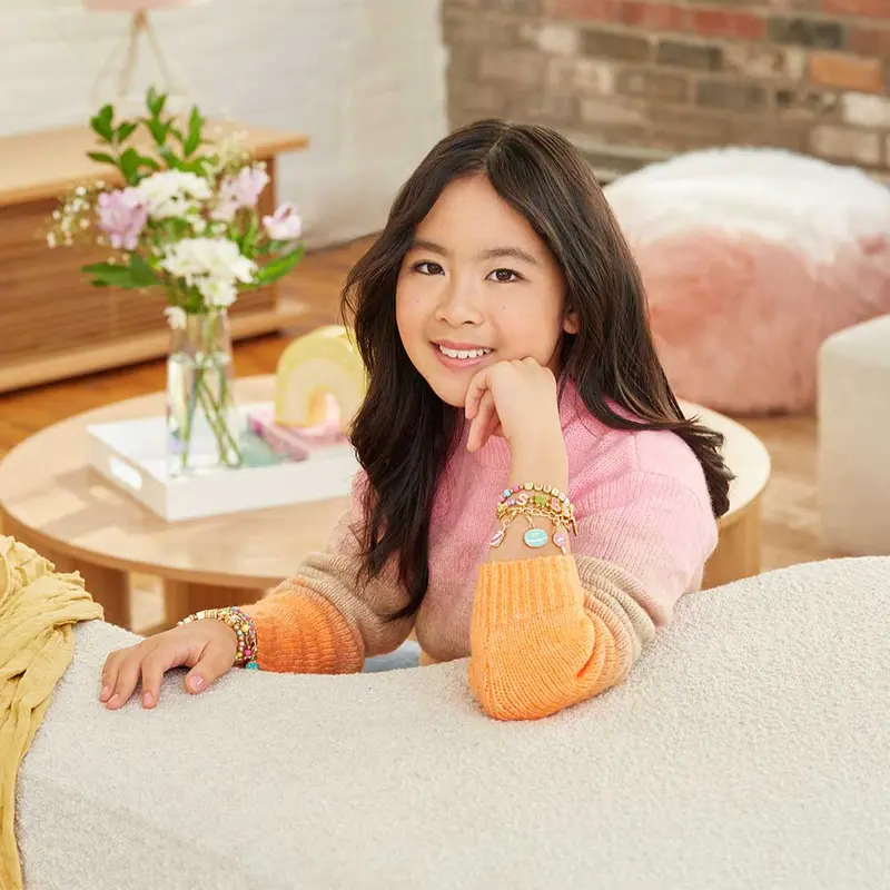 Набір для створення браслетів, від якого стане дуже солодко!Дівчата можуть насолодитися виготовленням 7 браслетів з набором для творчості "Солодкі смаколики". У наборі є все необхідне, а прості інструкції полегшать процес!Немає нічого приємнішого, ніж проводити час з близькими людьми, тому творіть разом з подружками. У комплект входить усе, що вам потрібно, від шнурів до намистин і шармів. Цей набір пропонує як цікаве дозвілля, так і спосіб проявити творчі здібності.Набори від Make it real - це завжди чудова ідея для подарунка. Яке ж задоволення!До набору входять:1 прозорий еластичний шнур, довжиною 4 м4 шнурочки зі штучної замші по 50 см кожен1 бавовняний шнур - 50 см66 намистин-літерпідвіски з бісеру на 11 літер168 бісерин в асортименті20 з'єднувальних кілець6 шармів1 браслет-ланцюжок1 інструкція1 органайзерРекомендовано для дівчат від 8 років.
