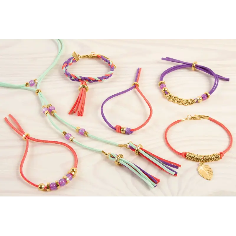 Гарне кольє та цілих 5 модних, вишуканих браслетів - ось стільки класних прикрас можна зробити за допомогою Набору для створення шарм-браслетів "Золоте сяйво" від MAKE IT REAL. Тут є все для створення унікальних шедеврів - до 60 золотих прикрас, 40 стильних намистин, ланцюжка, підвіски. Нема часу все перераховувати, так і хочеться швидше почати творити та створювати.Творчий набір від MAKE IT REAL допоможе навчитися висловлювати та проявляти свою творчість, змішуючи та поєднуючи різні предмети, кольори та матеріали. А прикраси, створені своїми руками, надають впевненості та віри в успішне майбутнє вашої красуні.Комплект включає:3 кольори шнура зі штучної замші (4,5 м)понад 60 золотих прикрас40 стильних намистинланцюжкизолота підвіскаінструкціїжурнал-гід за стилем.Продукція для дітей віком від 8 років.