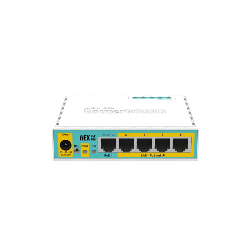 hEX Lite являє собою невеликий, пятіпортовий, продуктивний маршрутизатор класу SOHO, відповідний для організації мережі вдома і в офісі. Цей маршрутизатор приваблює не тільки своєю ціновою доступністю, а й своїми невеликими розмірами, красивим виконанням, а також простотою у використанні. Це, ймовірно, найдоступніший пристрій з мережею MPLS на світовому ринку! У поєднанні з операційною системою RouterOS, він оснащений процесором 850 МГц з можливістю розгону до 1 ГГц.Порти 2-5 можуть живити інші пристрої з підтримкою PoE з тим же напругою, що подається на пристрій.Максимальний струм становить 1 А на порт, порти Ethernet екрановані.Пристрій поставляється в пластиковому корпусі і комплектується з адаптером живлення 12V 0.5A.