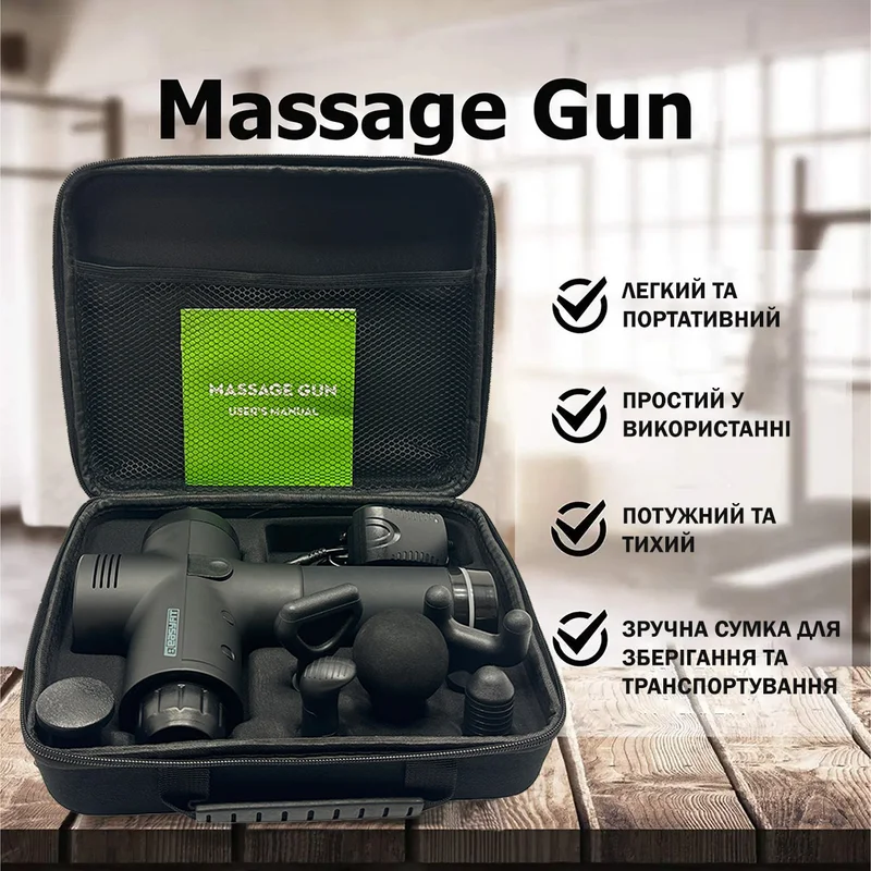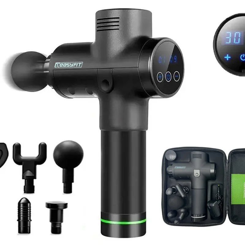 Масажний пістолет EasyFit Percussio (портативний перкусійний вібромасажер для тіла з 6 насадками)