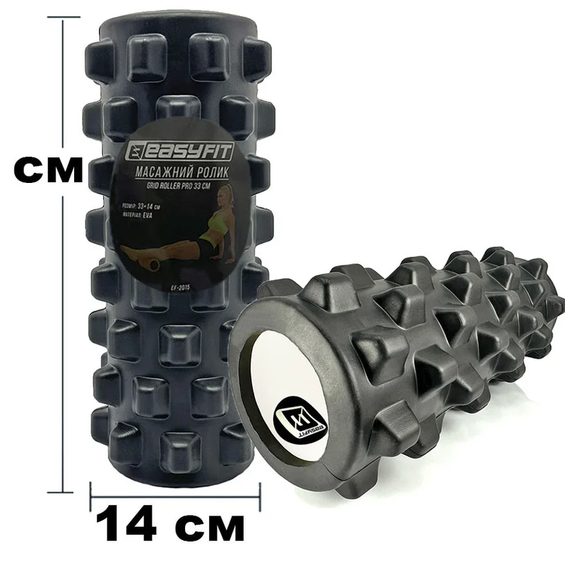 Масажний ролик EasyFit Grid Roller PRO 33 см Чорний