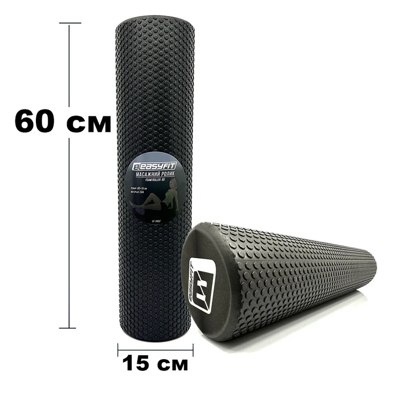 Масажний ролик EasyFit Foam Roller 60 см Чорний