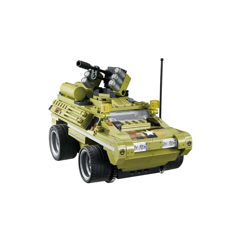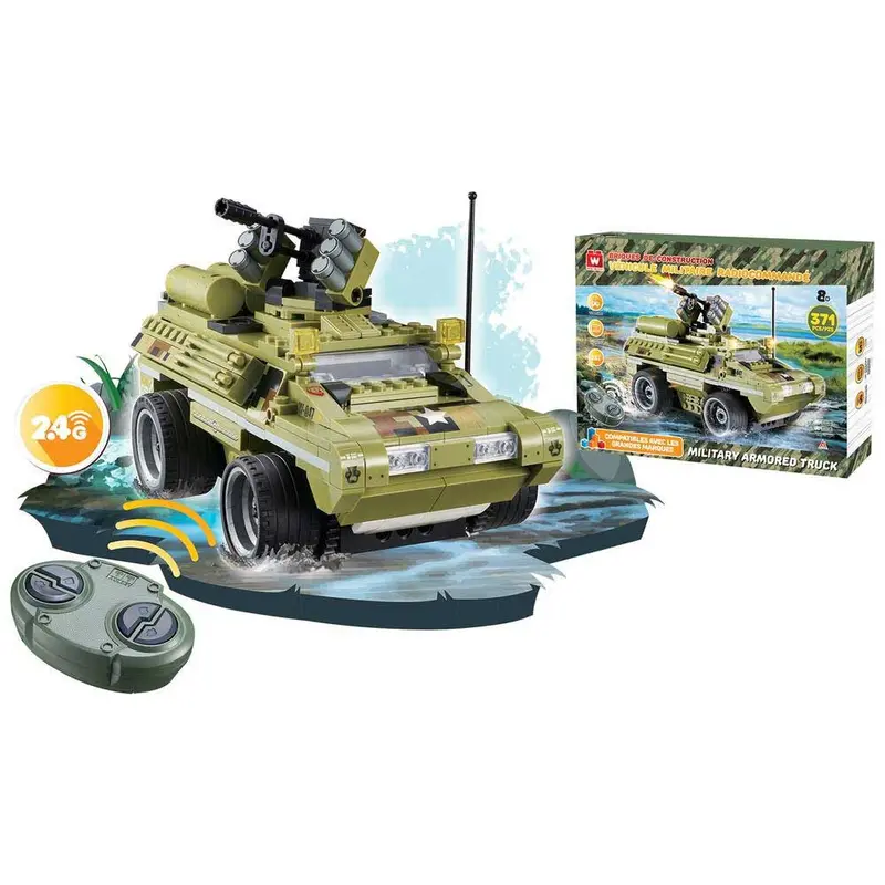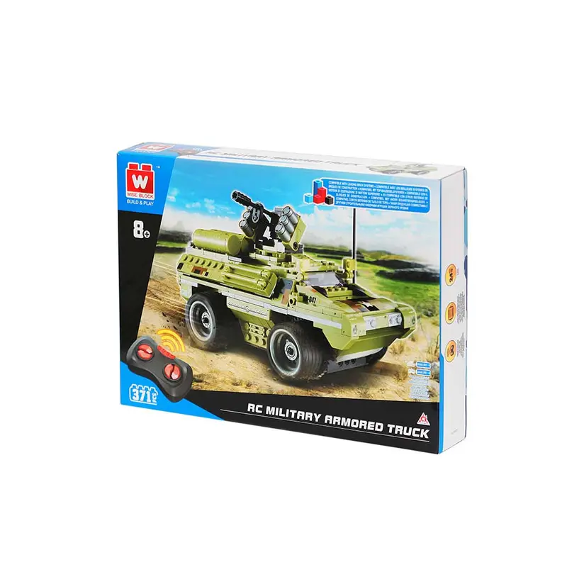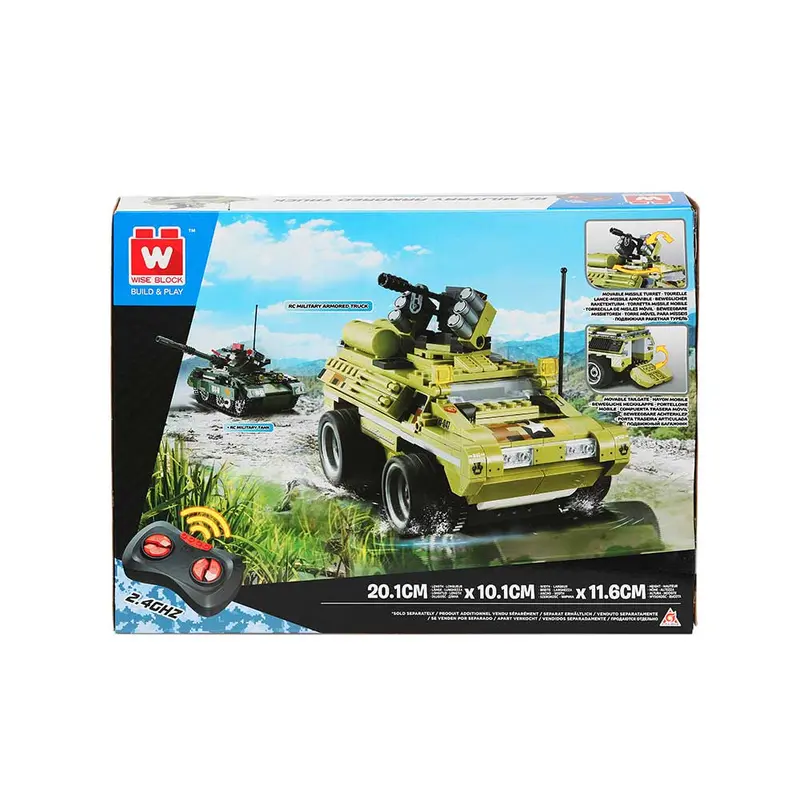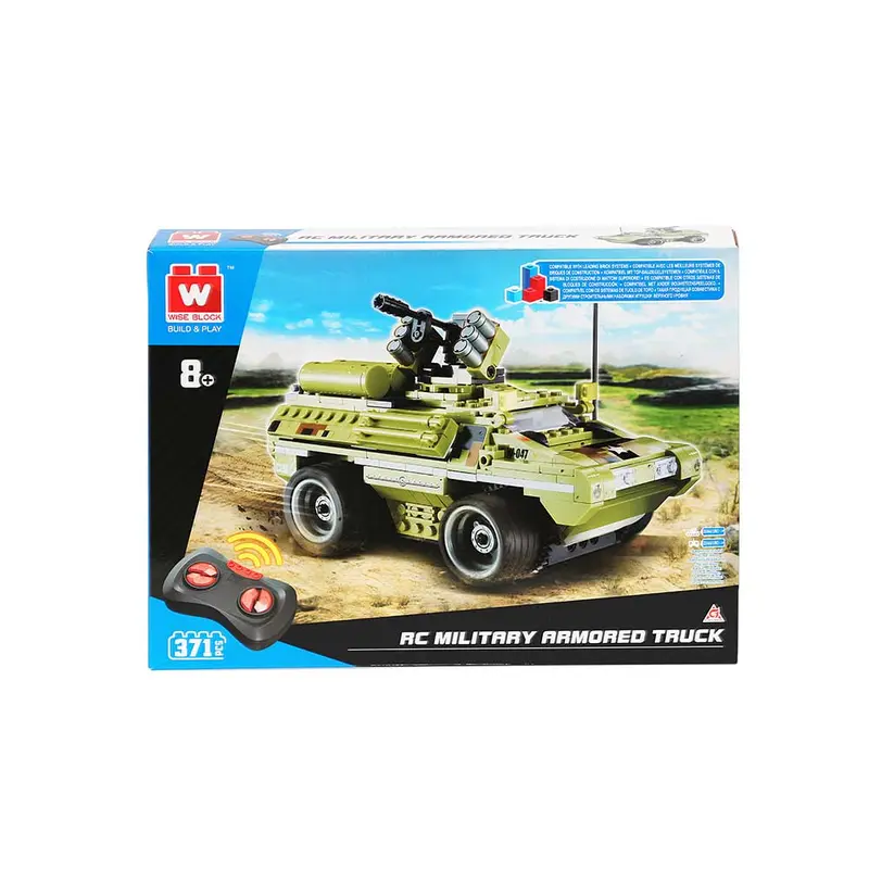 Відкрийте для себе новий радіокерований "Військовий броньований позашляховик" від Wise Block! Зберіть 371 деталь, щоб створити цю якісну військову вантажівку. За допомогою радіокерування з функціями вперед/назад, праворуч/ліворуч машина може мчати назустріч новим битвам! Позашляховик чудово долає перешкоди на своєму шляху в приміщенні та на вулиці. Працює від батарейок. Діапазон роботи: 20 метрів. Це набір 2в1 - спочатку дитина збирає машину-конструктор, а потім за допомогою пульта може дистанційно керувати ним. Набори Wise Block забезпечують цікаве дозвілля з сучасними іграшками, а не з гаджетами. Набори Wise Block мають ряд переваг:БЕЗПЕКА ДІТЕЙ — ГОЛОВНИЙ ПРІОРИТЕТ. Усі конструктори Wise Block виготовлені з високоякісного ABS-пластику, який є міцним для дітей. Складові конструктора відповідають усім вимогам безпеки іграшок, не містять BPA та нетоксичні. Більше того, кожна деталь автомобіля на радіокеруванні має заокруглені краї та гладку поверхню, що робить гру безпечною для дітей. Для іграшки-конструктора потрібні 3 батарейки AAA для автомобіля та 2 батареї AAA для пульта дистанційного керування (не входять в комплект).НАВЧАННЯ ПІД ЧАС ГРИ. Окрім машинок з інструкцій, діти можуть будувати власні машини на радіокеруванні відповідно до своїх уподобань. Це розвиває їхні творчі здібності та уяву. А практичні навички та координація рук і очей дітей будуть вдосконалюватися під час виготовлення цих іграшкових машин.ІДЕАЛЬНІ ПОДАРУНКИ ДЛЯ ДІТЕЙ. Машини-конструктори Wise Block на радіокеруванні для хлопчиків від 8 років водночас є супершвидкісними автомобілями. Це чудова ідея подарунку для батьків, які хотять приємно здивувати свою дитину.Іграшка підходить для дітей віком від 8 років.Всі набори Wise Block сумісні між собою та з конструкторами інших виробників.Збирай колекцію, влаштовуй справжні перегони!