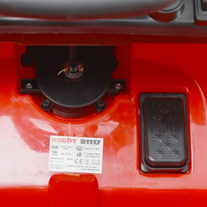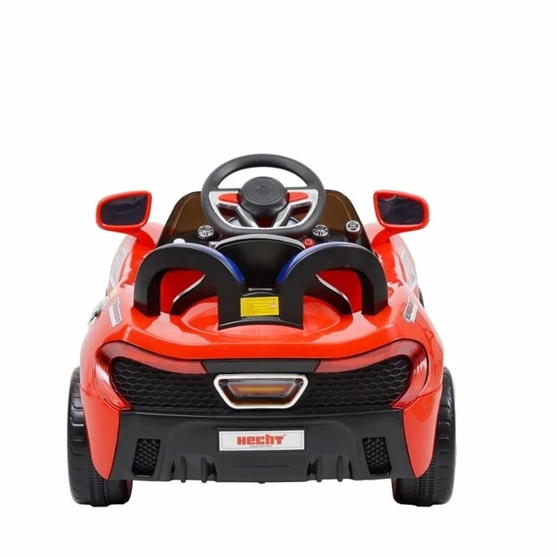 Дитячий автомобіль від Hecht з акумуляторним живленням оснащений вражаючим світлодіодним ліхтарем спереду і ззаду. Для безпеки вашої дитини, звичайно, в автомобілі є ремінь безпеки. Використовувалися два електродвигуни, які приводять в рух обидва задніх колеса. Двигуни живляться від 2 х 6 У 4 Ач батареї. На цифровому індикаторі батареї в кабіні завжди можна прочитати стан зарядки.