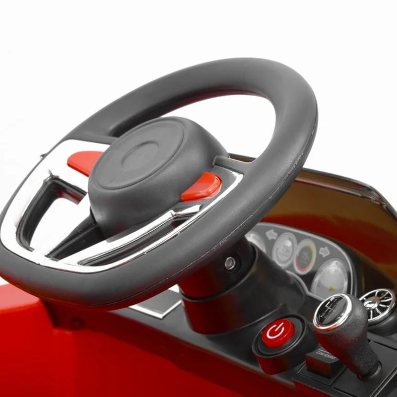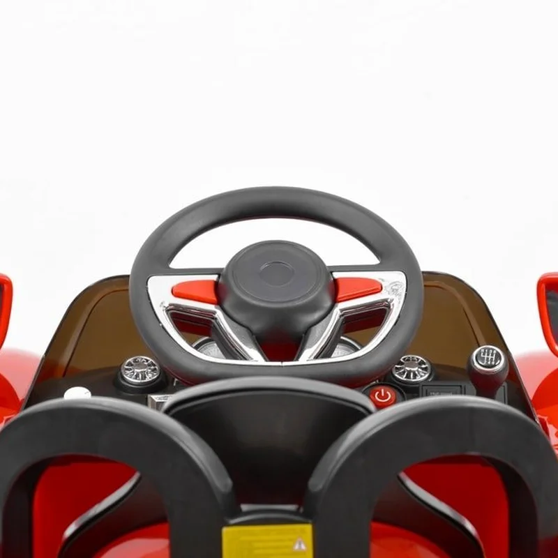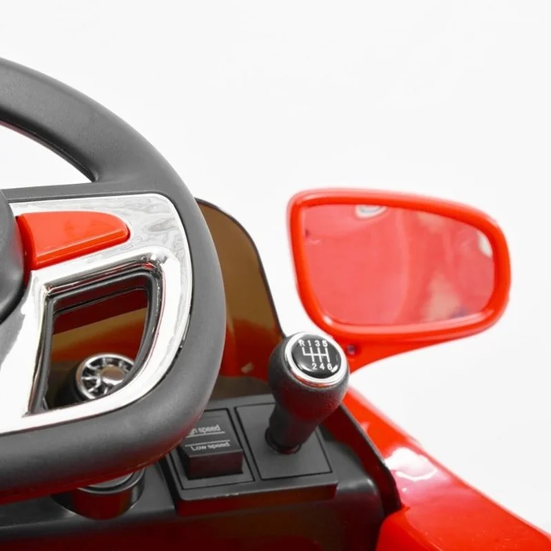 Маленький червоний автомобіль має 3 передачі, дві передні і одну задню. Максимальна швидкість руху вперед: 3,5 або 5 км / год (2 передачі вперед), приблизно назад 3,5 км / год. Чисте час водіння складає близько 1-1,5 години. Швидкість і час водіння залежать від стану землі, ваги дитини і т. Д. Транспортний засіб важить близько 9,9 кг і має довжину близько 101 см, ширину 53 см і висоту 43,5 см.