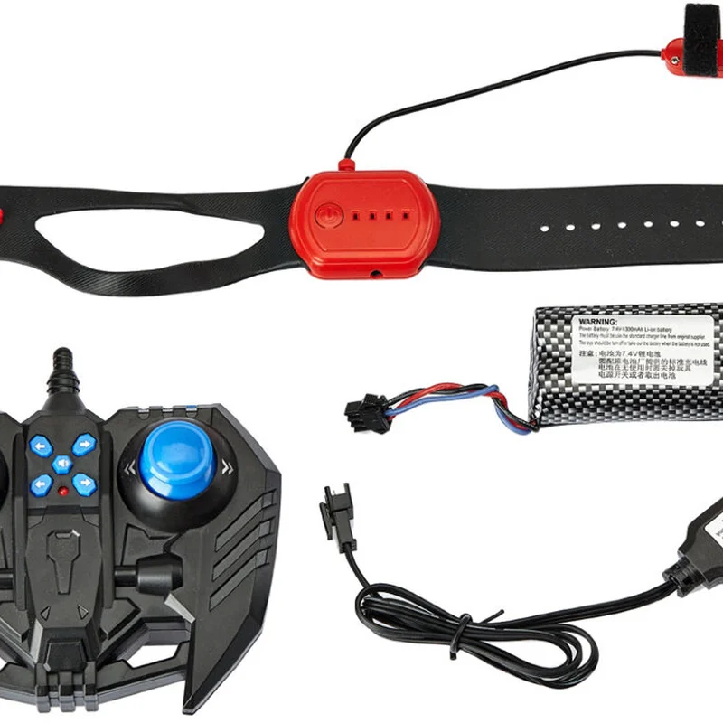 Живлення машинки забезпечується за допомогою літій-іонної акумуляторної батареї 7.4 В (входить в комплект поставки, разом із зарядним USB-шуром). Пульт управління живиться від двох батарейок типу АА по 1.5 В.Модель комплектується браслетом з вбудованою акумуляторною батареєю і зарядним USB-шнуром.