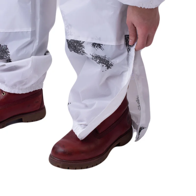 Завдяки блискавці знизу штанин, штани можна вдягати в польових умовах не знімаючи взуття.
