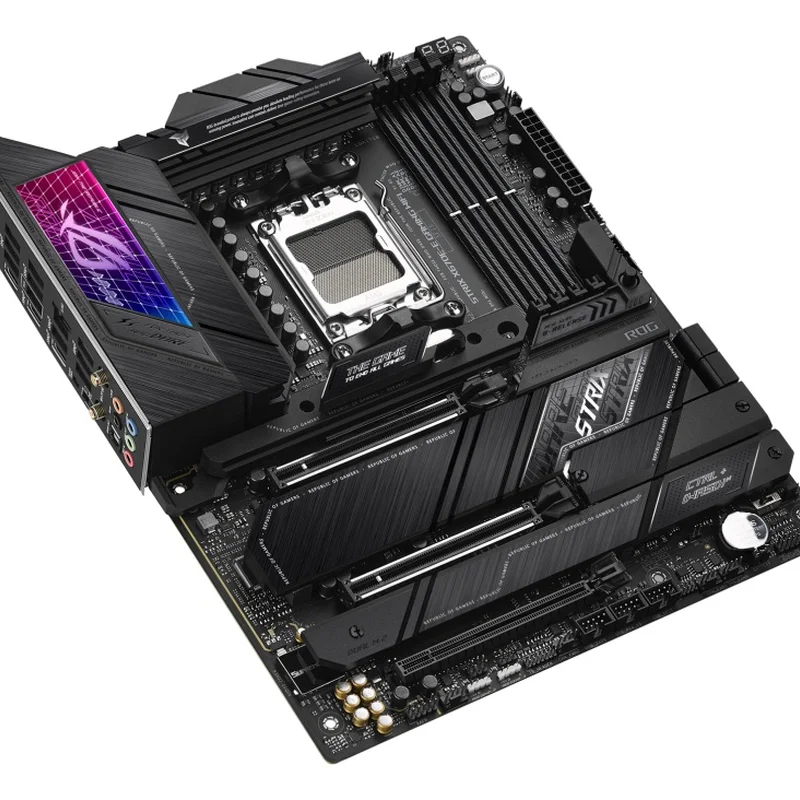 Посідає чільне місце у серії ROG Strix. Вона пропонує надійну систему живлення та ексклюзивні інструменти ROG для розгону процесорів AMD Ryzen 7000. Підтримка стандарту PCIe 5.0 поширена на максимальну кількість компонентів, реалізуючи можливості нового чіпсету, а для ефективного охолодження високошвидкісних накопичувачів M.2 пропонується додатковий масивний заради. Завдяки високій продуктивності, новітнім можливостям підключення та різноманітним удосконаленням: від зручності встановлення компонентів до спрощення налаштування системи, вибір цієї плати стане важливим кроком на шляху до майбутніх перемог. PCIE 5.0. Неперевершені можливості створення швидкісної системи зберігання даних забезпечують чотири слоти M.2, три з яких підтримують стандарт PCIE 5.0, один – PCIE 4.0. Збільшити швидкість роботи з даними та створити дзеркальну резервну копію можна, реалізувавши RAID-масив NVMe або SATA (підтримуються RAID 0/1/10) за допомогою AMD RAID Xpert2. Підтримка PCIe 5.0 також поширюється на два слоти розширення x16, що мають посилену конструкцію (SafeSlot) для встановлення важких відеокарт, а верхня з них обладнана кнопкою Q-release для легкого вивільнення відеокарти. AI OVERCLOCKING. Налаштування параметрів стало швидше і розумнішим, ніж будь-коли. ASUS AI Overclocking пропонує профілі процесора та системи охолодження, щоб налаштувати оптимальну конфігурацію та отримати максимальну віддачу від кожної системи. Запропоновані значення можуть бути активовані автоматично або використані як стартовий майданчик для подальших експериментів. СИЛУ DDR5.Для тих, хто не хоче обмежувати себе стандартною частотою модулів DDR5, материнська плата Strix X670E-E пропонує підтримку технології AMD Extended Profiles for Overclocking (EXPO). Якщо ви досвідчений ентузіаст, то вам доступний широкий набір налаштувань в інтерфейсі UEFI. МАСИВ РАДІАТОРІВ МОДУЛЯ VRM. Два масивні радіатори VRM, з'єднані між собою тепловою трубою, забезпечують достатню площу поверхні та масу для задоволення потреб у потужності високопродуктивних процесорів AMD серії Ryzen 7000. Термопрокладки. Між силовими елементами та радіаторами встановлені високоякісні термопрокладки, які допомагають покращити теплопередачу та знизити робочу температуру в системі живлення. КОМБІНОВАНИЙ РАДІАТОР M.2. Радіатор M.2 з тепловою трубкою прямого контакту забезпечує достатню площу поверхні ефективного відведення тепла від накопичувачів M.2 PCIe 5.0 навіть в умовах обмеженого потоку повітря. ЗАХИСНА ПЛАСТИНА M.2. Слот M.2_1 має захисну пластину, що гарантує, що високопродуктивний накопичувач стандарту PCIe 5.0 працюватиме з максимальною продуктивністю навіть за обмеженої циркуляції повітря. РАДІАТОРИ M.2. Всі слоти M.2 плати оснащені радіаторами для тепловідведення від SSD NVME. Таким чином вони зможуть показати свою максимальну продуктивність без загрози перегріву. МАСИВНИЙ РАДІАТОР M.2. Тримайте під контролем температуру накопичувачів за допомогою найбільшого вбудованого радіатора для пристроїв M.2, який будь-коли встановлювався на наших материнських платах.Вставте в слоти твердотільні накопичувачі, закрутіть кілька гвинтів і спостерігайте, як температура падає, завдяки цьому масивному радіатору, що відводить теплоту від пристроїв. WI-FI 6E. Вбудований модуль стандарту Wi-Fi 6E використовує переваги нового діапазону частот 6 ГГц і до семи каналів 160 МГц, що забезпечують надвисоку швидкість бездротової пере