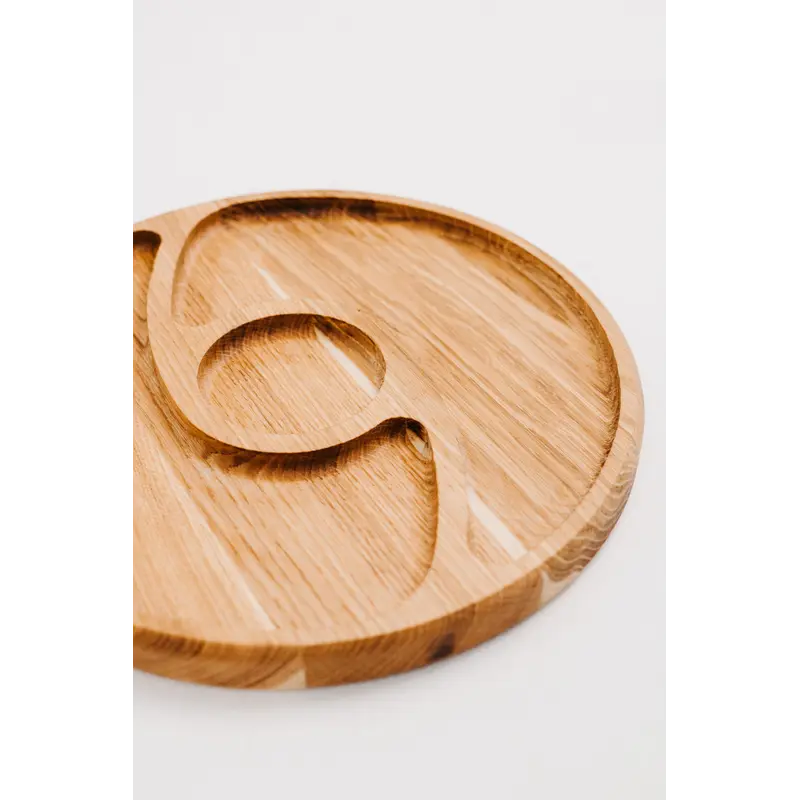 Опис Дошка менажниця з дуба поєднує природню міцність та функціональність. Кругла форма тарілки надає їй вишуканого вигляду, а діаметр 30 см створює достатньо простору для різноманітних закусок. Товщина 2,5 см та глибина 1 см забезпечують надійність та стійкість конструкції.Дошка оброблена соняшниковою олією, що надає їй натуральний блиск і зберігає природну текстуру деревини. Це не тільки надає гарний зовнішній вигляд, а й служить захисним покриттям, продовжуючи термін служби виробу.Секції різних розмірів на дошці дозволяють організувати презентацію закусок та соусів з вишуканістю та стилем, роблячи сервірування столу ще більш привабливим.