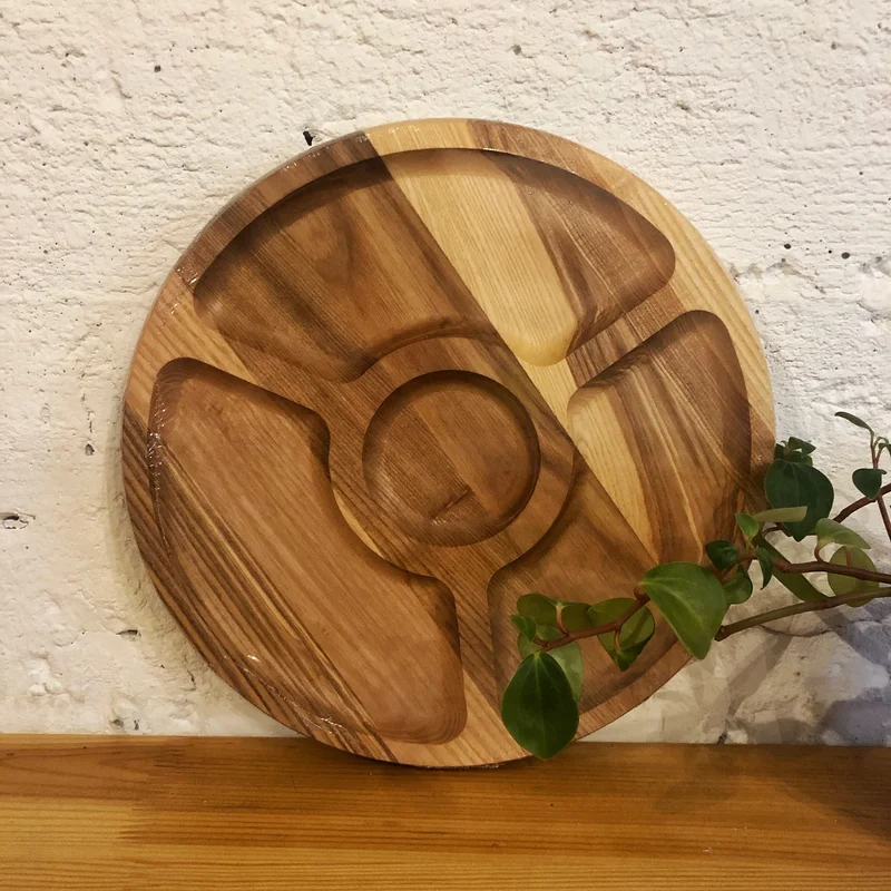 Менажниця дерев"яна TreeVeru кругла на 3 відділення + соус Ø30 см (ясінь)