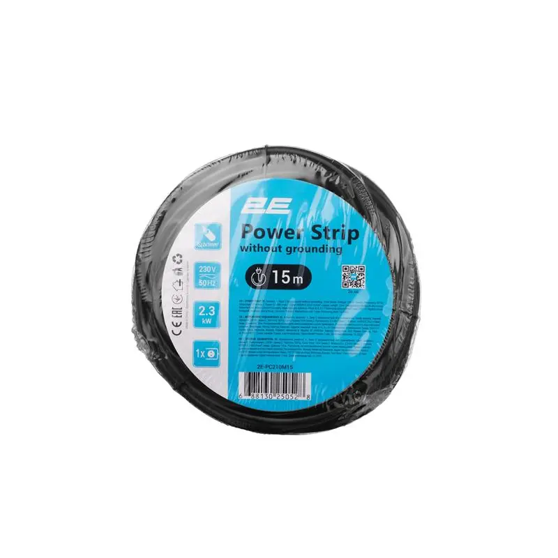 Мережевий подовжувач 2E модель PC210M15 призначений для підключення офісної та побутової техніки сумарною потужністю до 2,5 кВт. Має одну розетку типу CEE7/17 без заземлення (євророзетка/євровилка), двожильний кабель із перерізом жили 1 мм2, матеріал провідника – мідь.