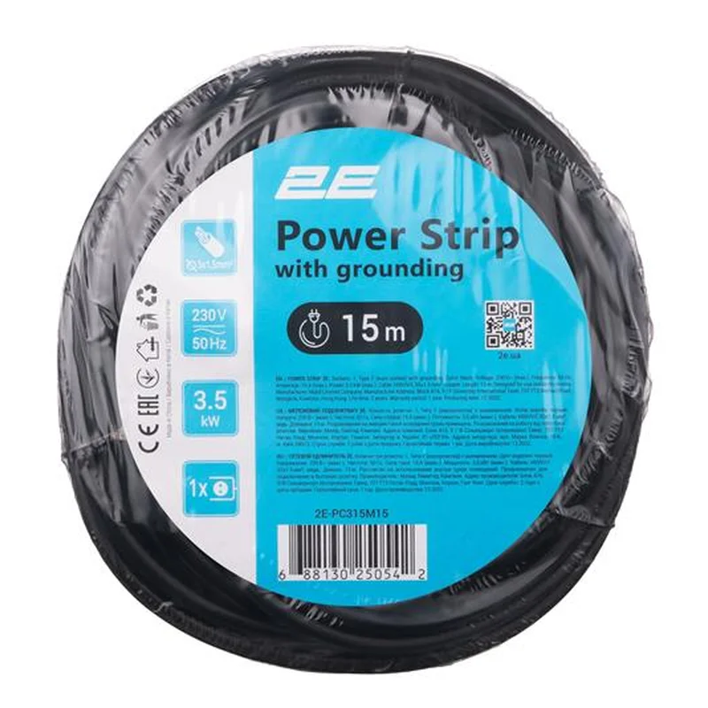 Мережевий подовжувач 2E 1XSchuko, 3G*1.5мм, 15м, black (2E-PC315M15)
