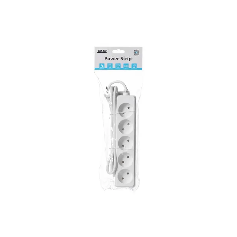Мережевий подовжувач 2E модель U0510M1.5 призначений для підключення офісної та побутової техніки сумарною потужністю до 2,5 кВт. Має п’ять розеток типу CEE7/17 без заземлення, двожильний кабель із перерізом жили 1 мм2, матеріал провідника – мідь.