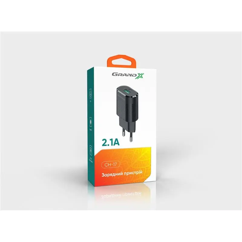 Мережевий зарядний пристрій Grand-X (1xUSB 2.1А) Black (CH-17BL) + кабель Lightning