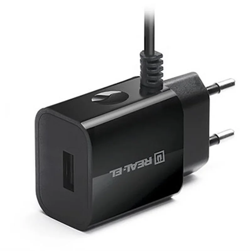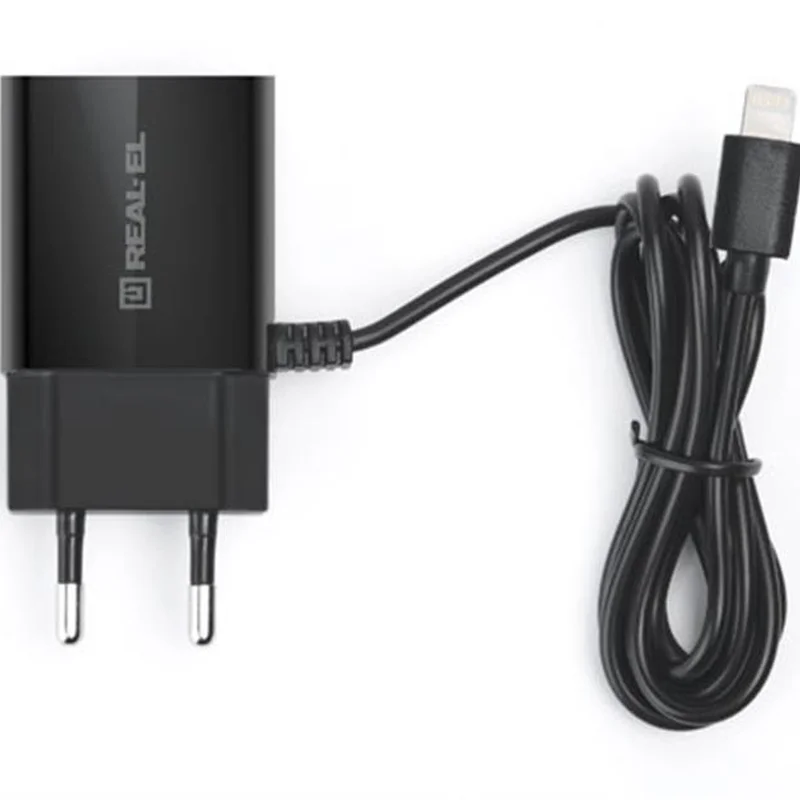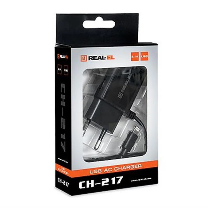 Мережевий зарядний пристрій REAL-EL CH-217 (2USB, 2.1A) Black + кабель Lightning