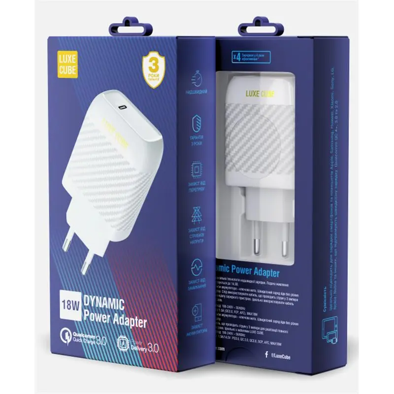 Мережевий зарядний пристрій Luxe Cube Dynamic 18W (1USBх3A) White (4446689880643)