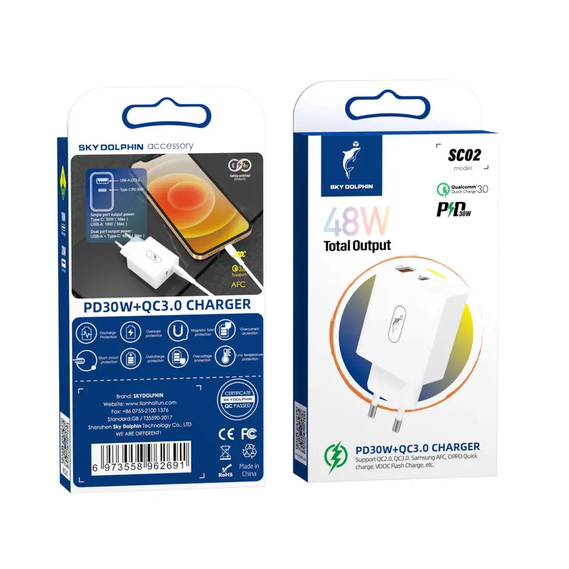 Мережевий зарядний пристрій SkyDolphin SC02 (2USBx2.4A) White (MZP-000185)
