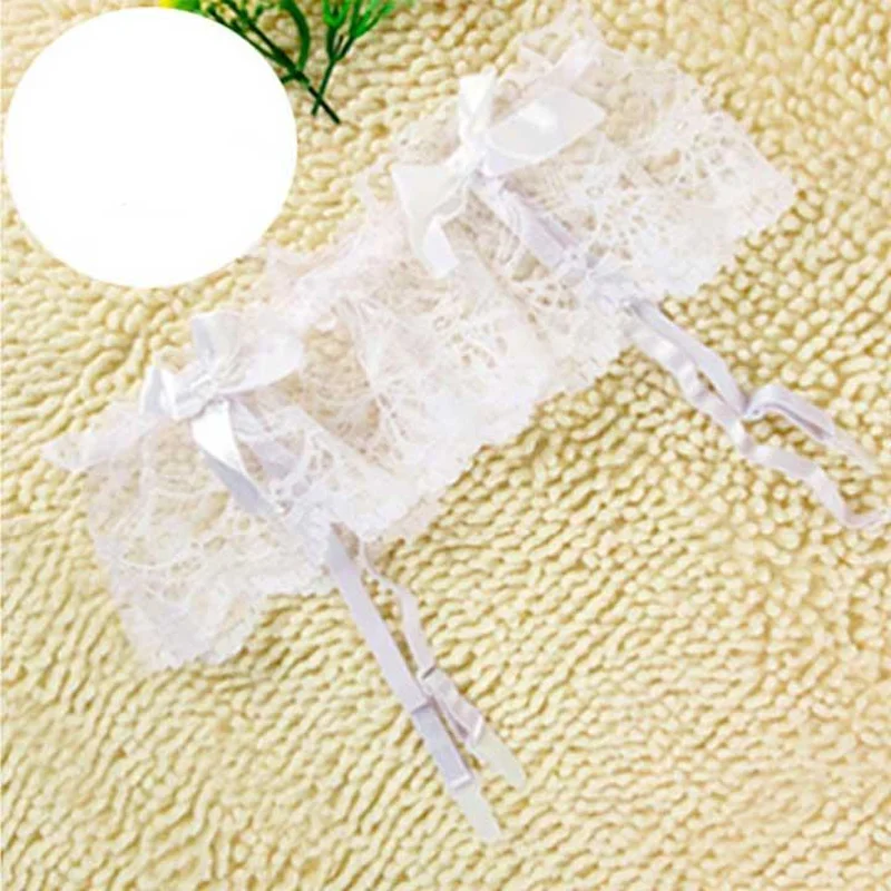 Мереживні стрінги з поясом для панчіх - Білий - XS/S/M - Еротична білизна