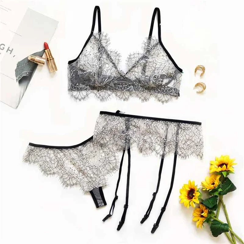 Мереживний комплект з поясом для панчіх - Білий - М - Еротична білизна