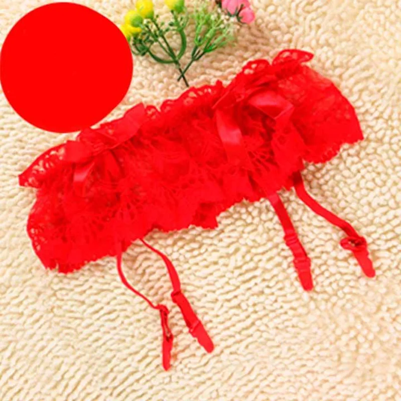 Мереживні стрінги з поясом для панчіх - Червоний - XS/S/M - Еротична білизна