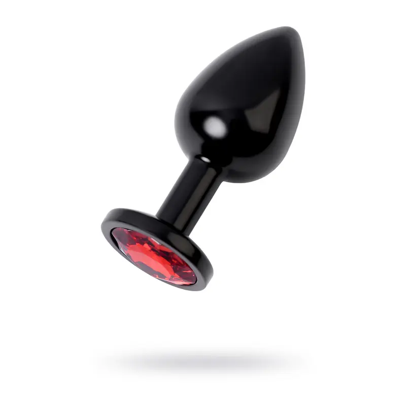 Анальная пробка с красным кристаллом Metal By Toyfa, черная