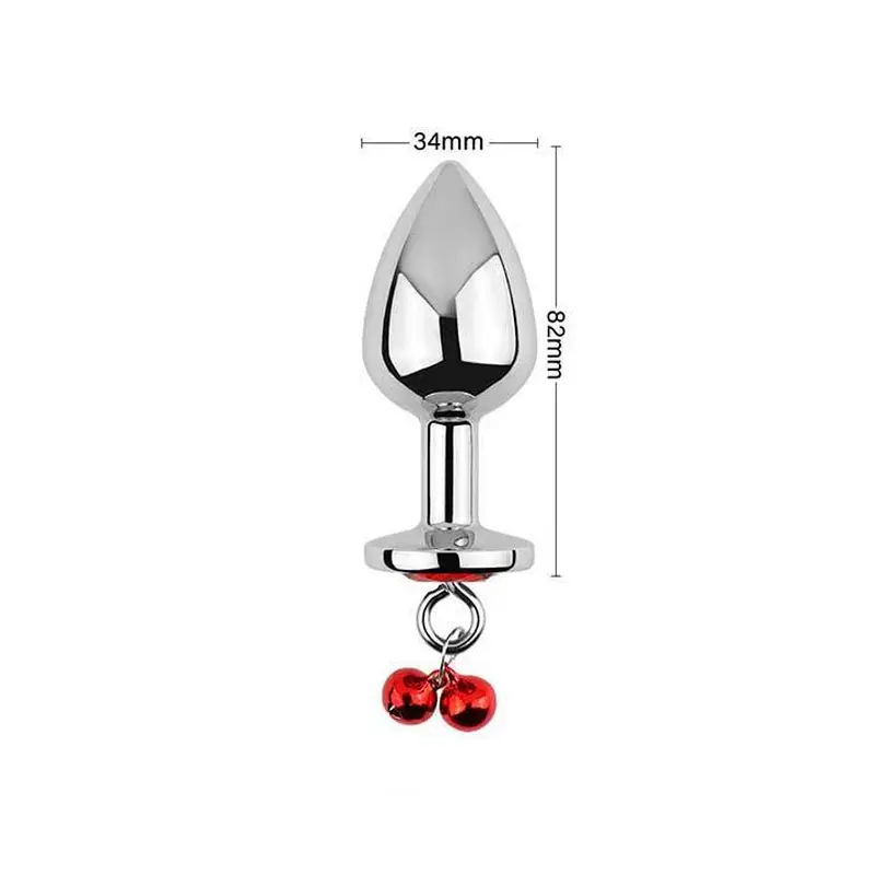 Металева анальна пробка з дзвіночками - Червоний - 3,4*8,2 см - Анальні іграшки