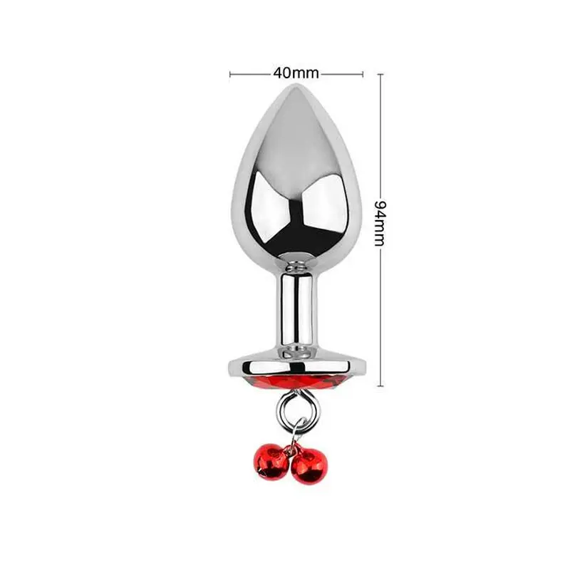 Металева анальна пробка з повідцем - Червоний - 4*9,4 см - Анальні іграшки