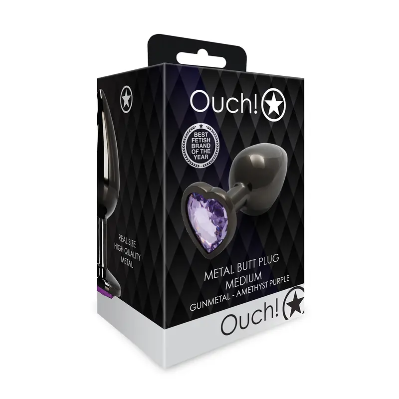 Металева анальна пробка з кристалом Ouch! Heart Gem - розмір M