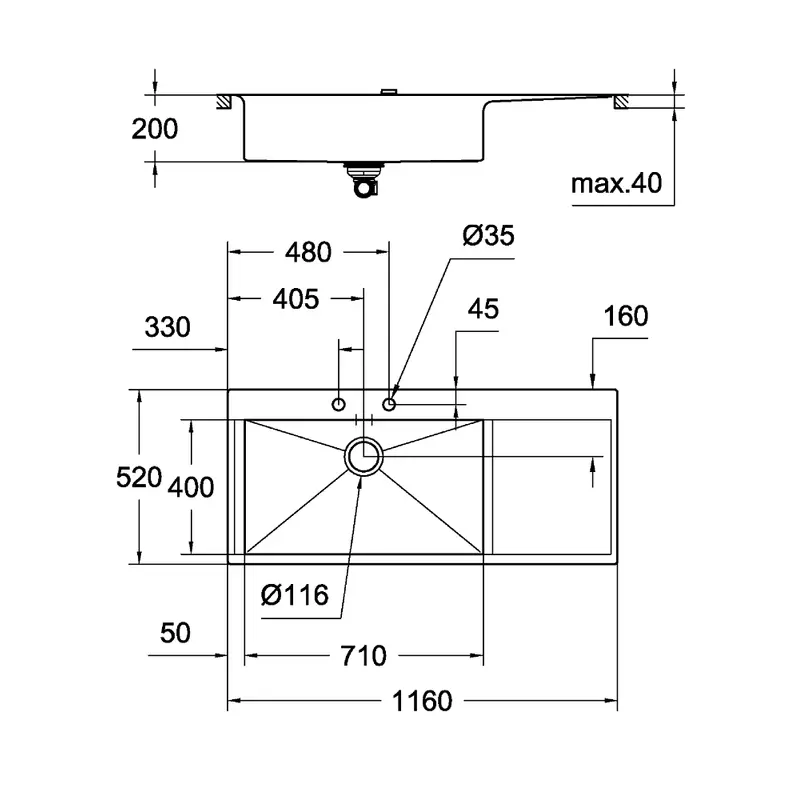 Мийка кухонна Grohe EX Sink K1000 (подвійне крило зліва) (31581SD0)