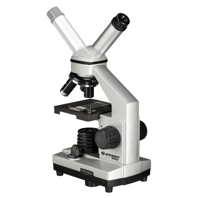 Мікроскоп Bresser Junior 40x-1024x USB HD Camera (8855001) - це цифрова, добре укомплектована модель мікроскопа з HD USB PC-мікроокуляром який забезпечує в реальному часі комфортне спостереження зразків безпосередньо з екрану монітора і дозволяє задокументувати свої спостереження і поділитися ними з друзями. З HD-камерою спостерігач може створювати і редагувати фотографії з роздільною здатністю 1280х720 в форматі JPEG та записувати відео в форматі MP4. Дана модель поставляється з широким набором аксесуарів, об'єктивів і окулярів, необхідних для спостережень, що дає можливість відразу зануритися в цікавий і захоплюючий мікросвіт. Водночас прилад оснащено якісною скляною мультипросвітленою оптикою, що робить його цікавим не лише підліткам, а й дорослим. Комбінація двох ширококутних окулярів та трьох об'єктивів дає можливість отримати збільшення 640х. Вдалим рішенням є використання в мікроскопі лінзи Барлоу для отримання безступінчастого (плавного) масштабування зображення, завдяки чому досягається максимальне збільшення 1024х. Монокулярна насадка, нахилена під кутом 45°, повертається на 360°, дозволяючи спостерігати у будь-якому зручному положенні, і навіть працювати з мікроскопом групі дітей чи дорослих без переміщення мікроскопа у просторі. Мікроскоп забезпечений комбінованим підсвічуванням - двома світлодіодними лампами, розміщеними над і під предметним столиком. Світло, що проходить скрізь зразок, використовується для спостереження прозорих об'єктів, світло що відбивається - для непрозорих тривимірних зразків. Використання двох ламп одночасно може бути корисним при спостереженні напівпрозорих зразків. Яскравість освітлення, передача кольору і спрямованість пучка світла контролюється діафрагмою з різними діаметрами отворів і п'ятьма світлофільтрами. Перелік аксесуарів включає готові слайди, до огляду яких можна розпочати негайно. Також у наборі є аксесуари для препарування зразків, мікротом для самостійного приготування зразків, інкубаторій та готові препарати. Мікроскоп живиться від змінних елементів живлення типу АА (не входять в комплекту), завдяки чому можна проводити спостереження в місцях, де немає електричної мережі.