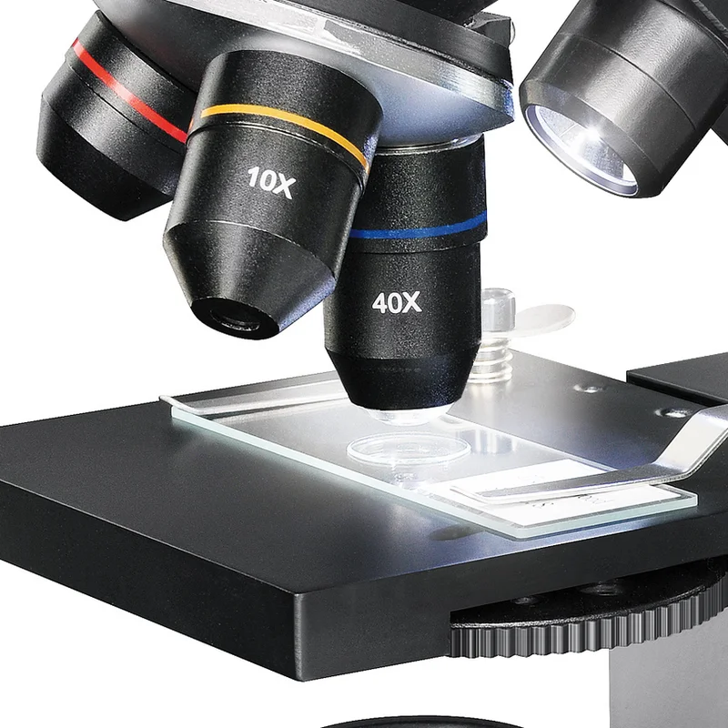 - Збільшення об'єктивів: 4х, 10х, 40х (підпружинений)